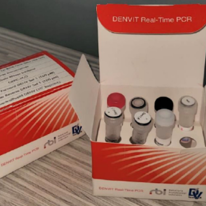 Deskripsi produk: DENVIT merupakan kit deteksi dengue berbasis teknologi One-step Real-Time PCR. Kit ini dapat digunakan untuk deteksi keempat serotipe dengue (DENV). Limit deteksi DENVIT adalah 10.107 kopi/mL dengan spesifisitas sangat baik